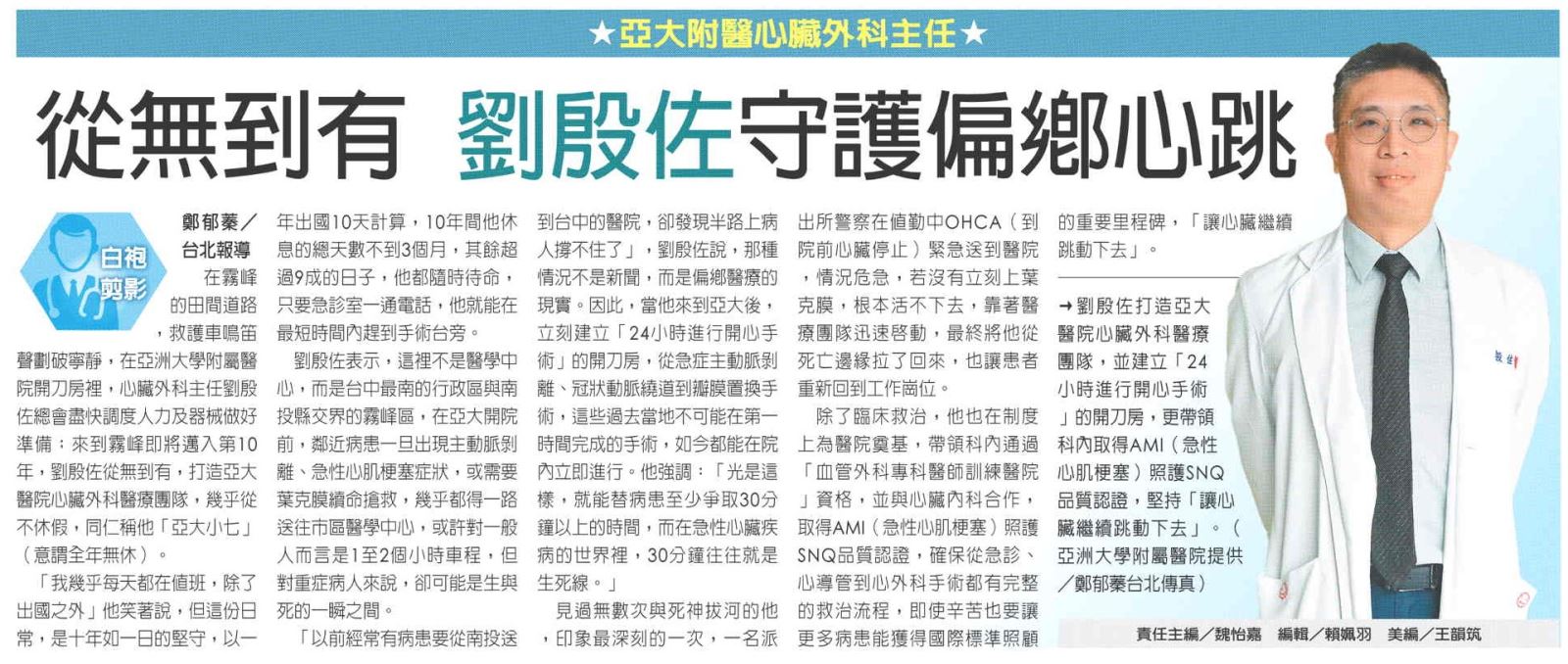 亞洲大學附屬醫院心臟外科主任 劉殷佐堅持「讓心臟繼續跳動下去」